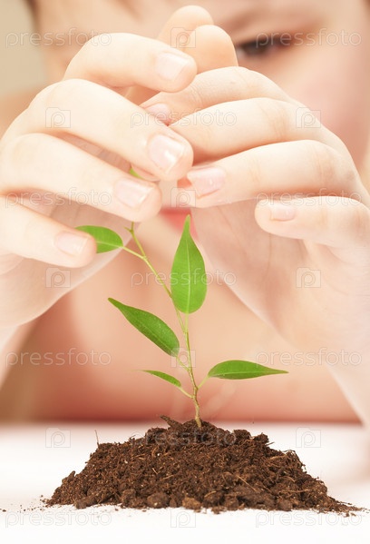 Мальчик наблюдает за ростом молодого растения
