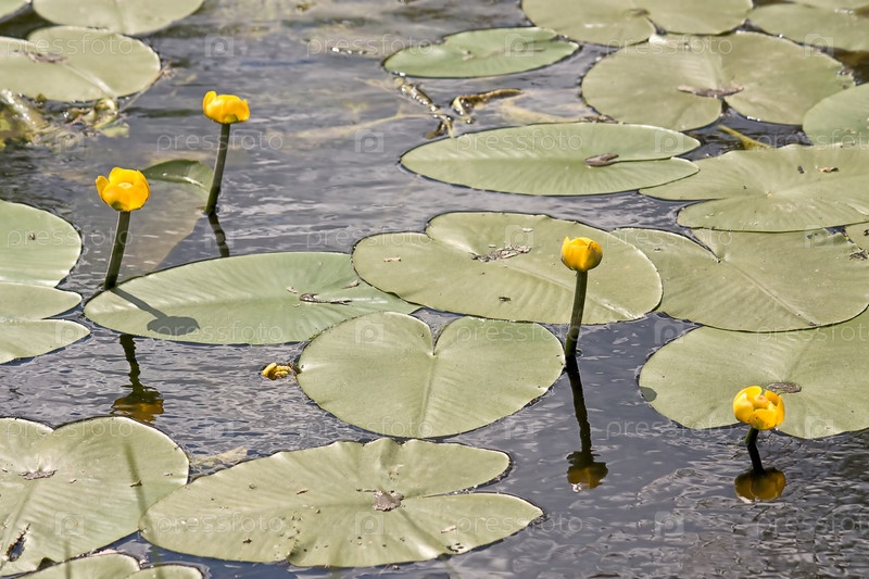 Желтые кувшинки растут в пруду