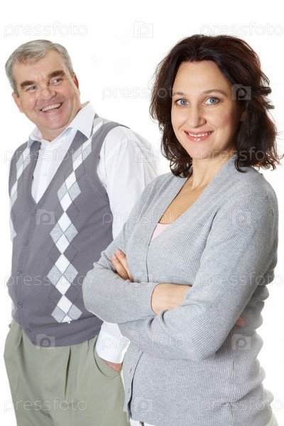 Счастливые супруги, изолированные на белом фоне