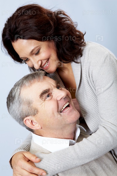 Счастливые супруги, на голубом фоне