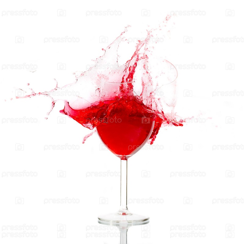 Разбитый бокал с вином на белом фоне