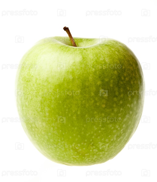 Зеленое спелое яблоко на белом фоне