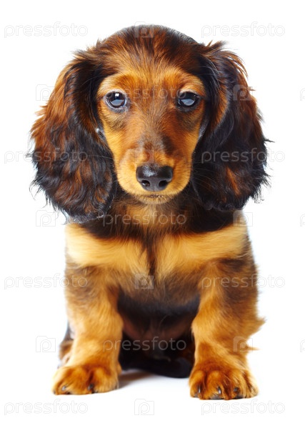 Щенок таксы на белом фоне