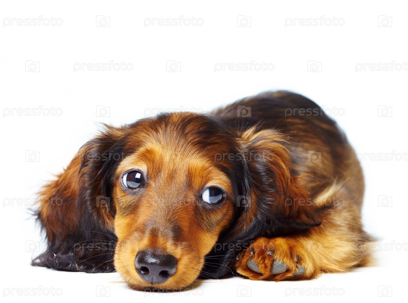Щенок таксы на белом фоне