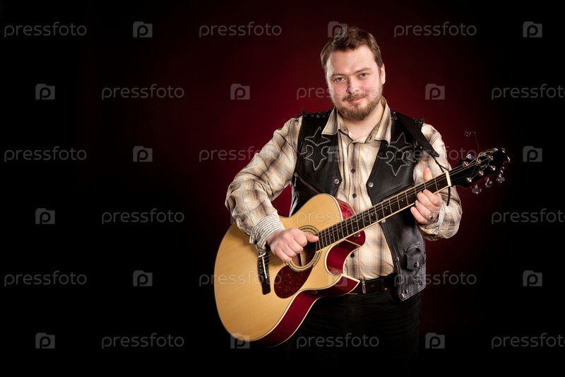 Мужчина с гитарой на темном фоне