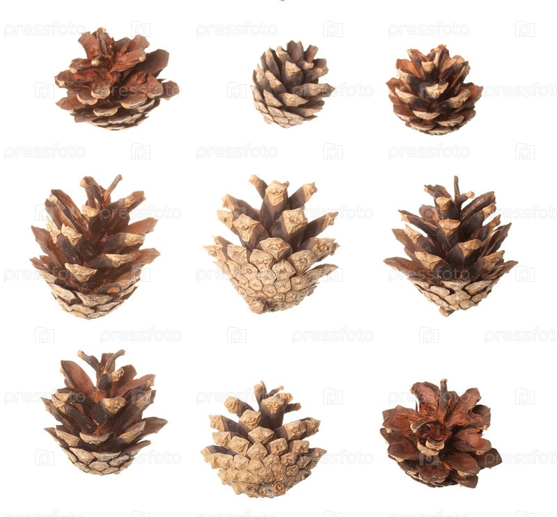 Сосновые шишки на белом фоне