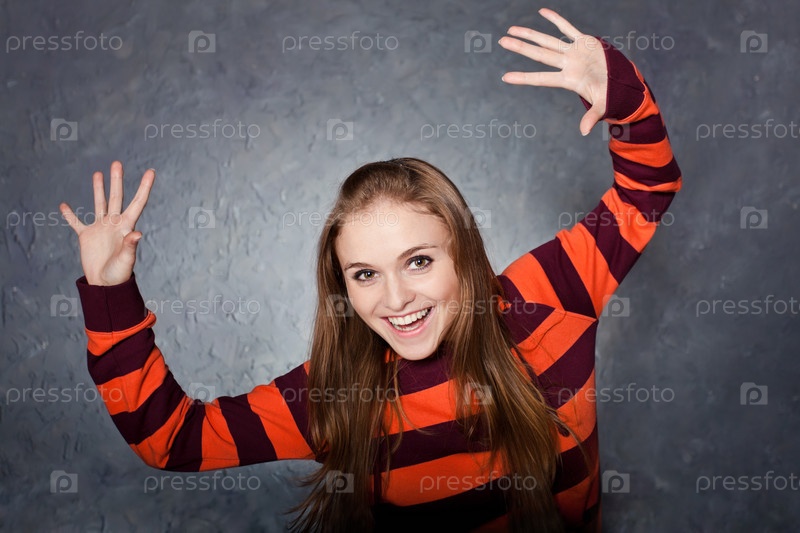 Смеющаяся молодая девушка в полосатой одежде