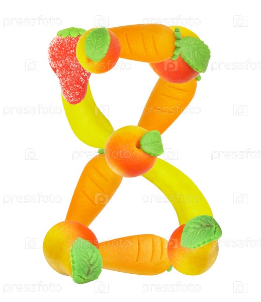 Цифра "восемь", состоящая из овощей и фруктов