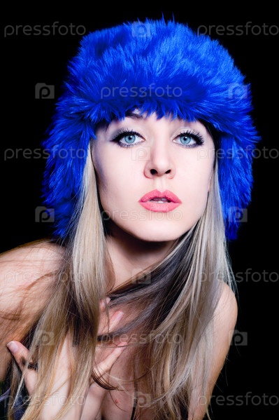 Портрет красивой блондинки в синей шапке