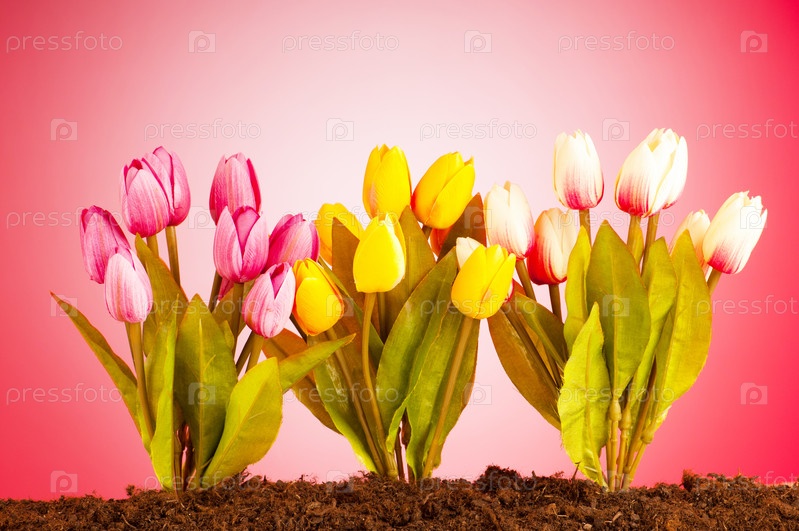Тюльпаны, растущие в почве
