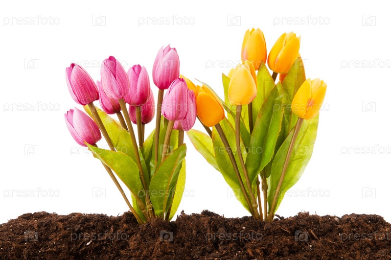 Тюльпаны, растущие в почве
