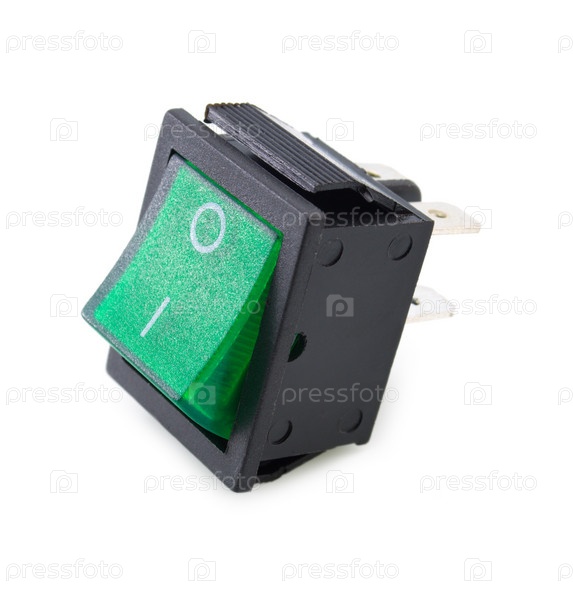 Зелёный переключатель выключен.Фото на белом фоне