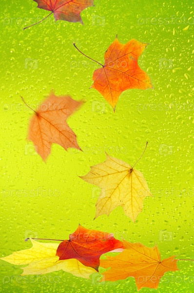 Кленовые листья на желто-зеленом фоне