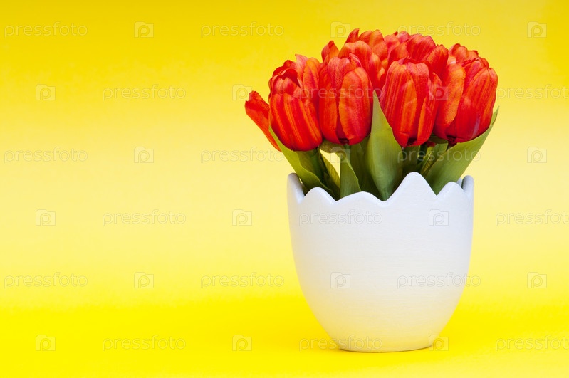 Красные тюльпаны в белом горшке