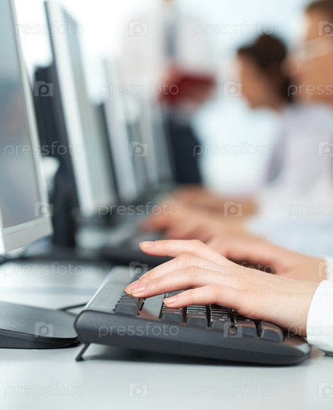 Руки работают на компьютере, крупный план