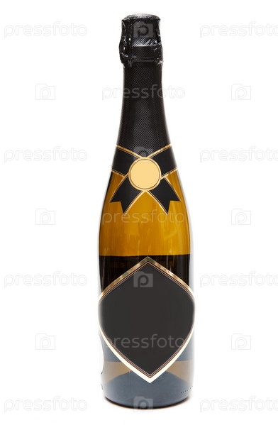 Бутылка шампанского на белом фоне