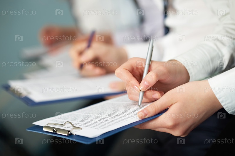 Бизнес-семинар, руки с документами крупным планом