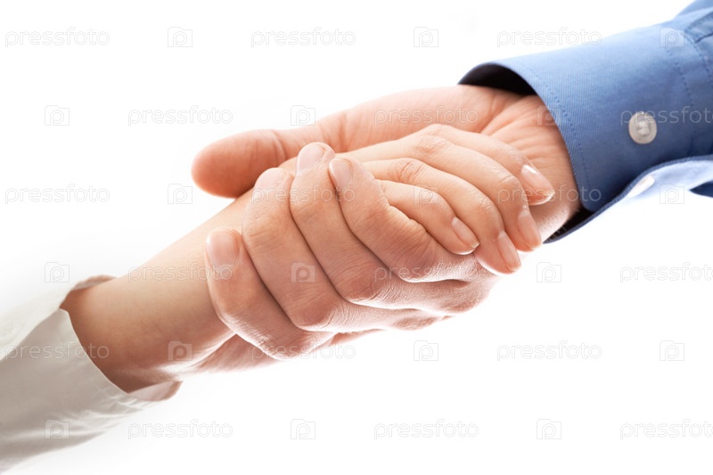 Рукопожатие крупным планом, на белом фоне