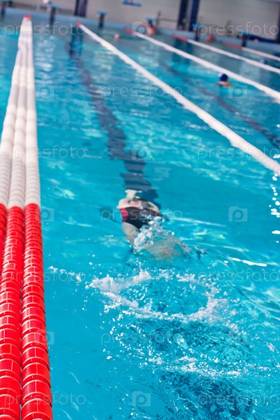 Девушка, занимающаяся спортивным плаванием в бассейне