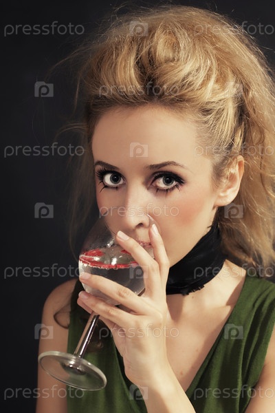 Портрет красивой блондинки с бокалом воды