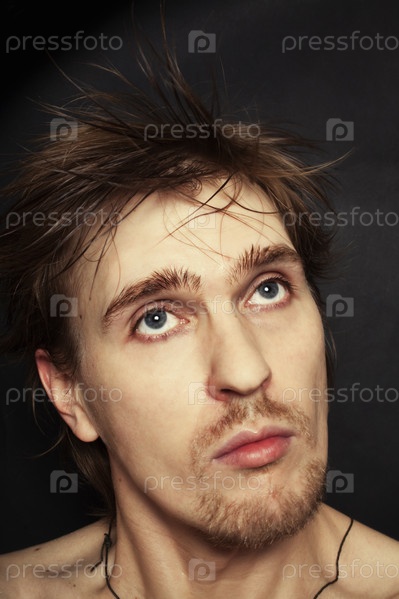 Портрет печального мужчины на черном фоне