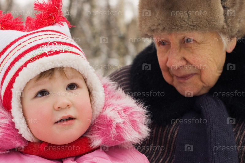 Внучка с бабушкой в зимнем парке