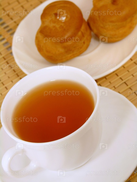 Эклеры со сливками и чашка чая