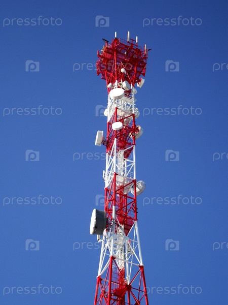 Телекоммуникационная башня на фоне голубого неба