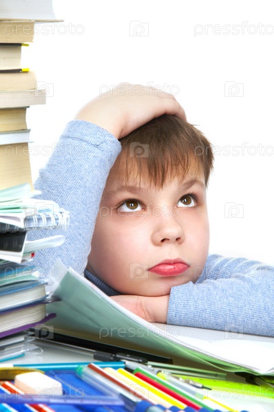 Мальчик за столом с книгами