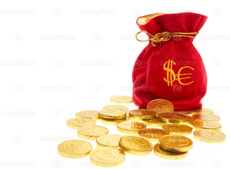Мешок с монетами на белом фоне
