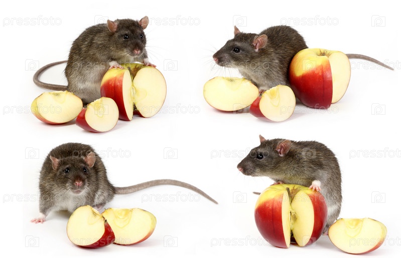 Серые крысы едят яблоки