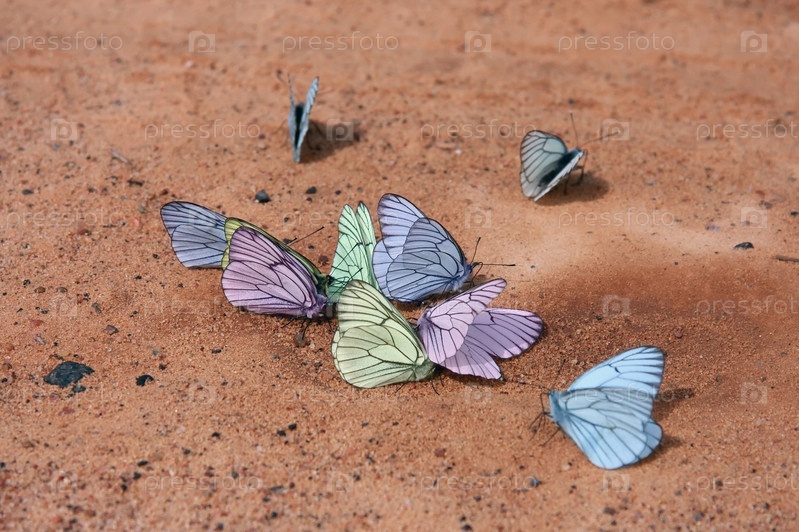 Бабочки, сидящие на песке