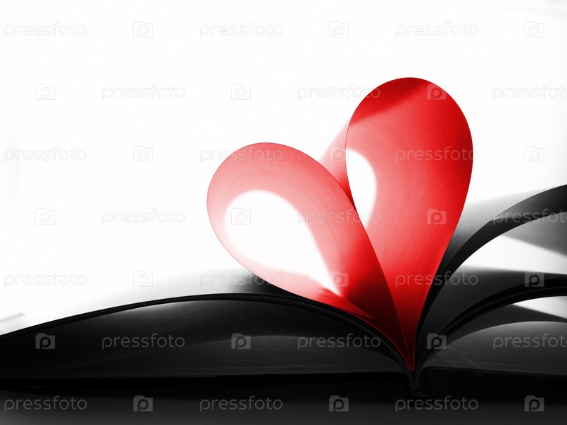 Красное сердце из книжных страниц на белом фоне