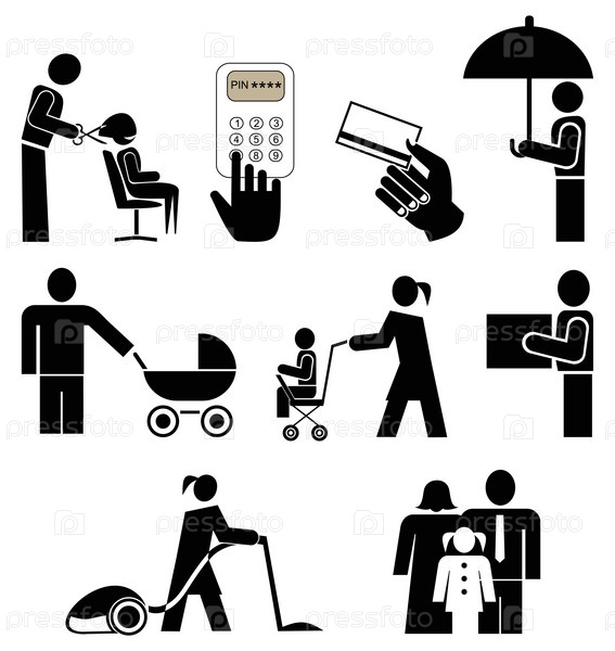 Набор черно-белых иконок с людьми