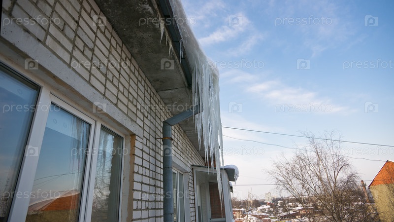 Большие сосульки свисают с крыши