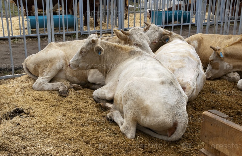 Племенные коровы в загоне на агропромышленной выставке