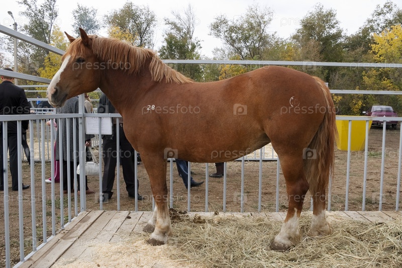 Лошадь в загоне на агропромышленной выставке