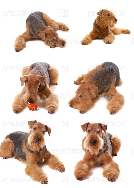 Эрдельтерьер в разных ракурсах на белом фоне