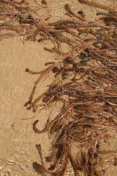 Водное растение на песчаном фоне летом
