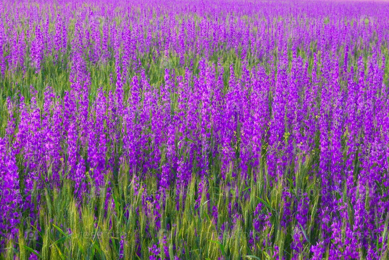 Поле с красивыми фиолетовыми цветами