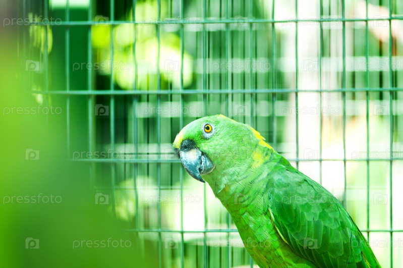 Зеленый попугай в клетке