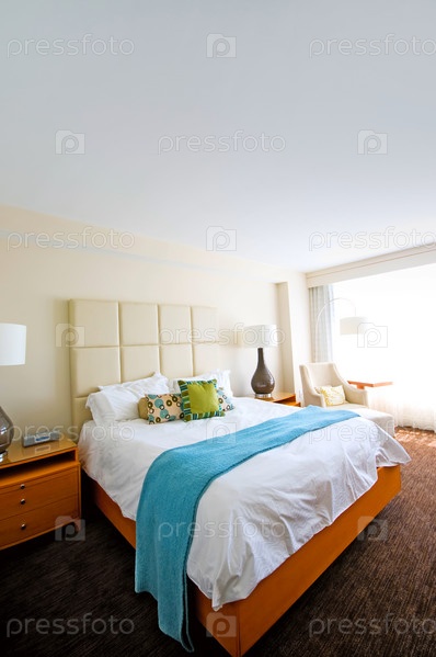 Двуспальная кровать в номере отеля