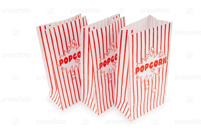 Три бумажных пакета для попкорна на белом фоне