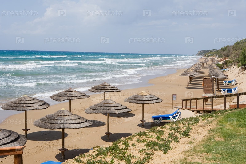 Греция. Пелопоннес. Зонтики на пляже