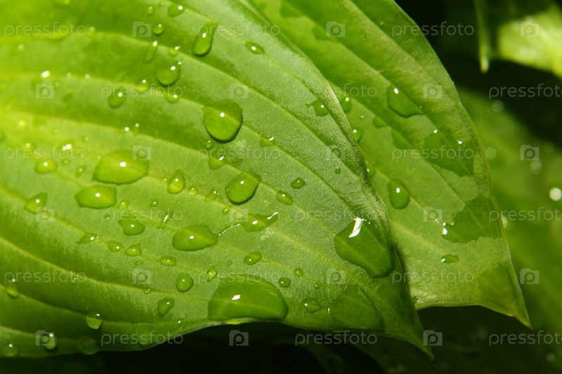 Роса капли на зеленые листья