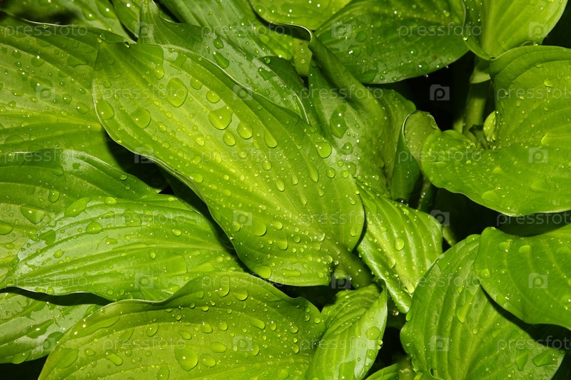 Роса капли на зеленые листья