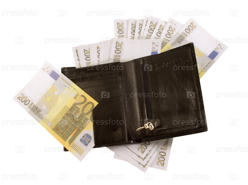 Черный кошелек с деньгами