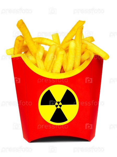 Картофель фри в коробке со знаком "Радиоактивно"