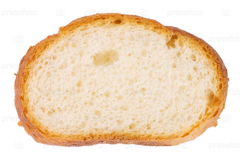 Кусочек хлеба крупным планом на белом фоне