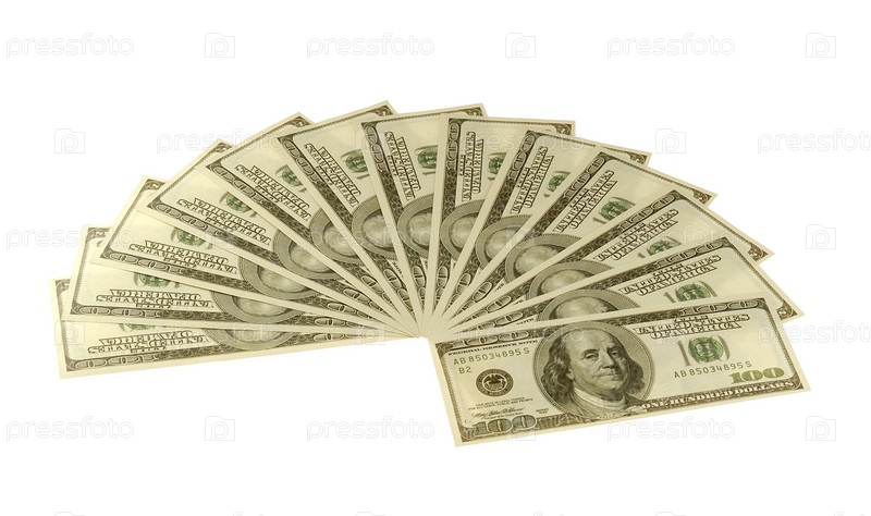 Несколько стодолларовых купюр на белом фоне